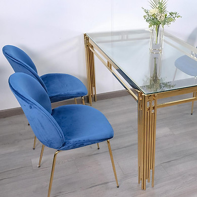 Nếu bạn cần 1 bộ bàn ăn sang trọng, đẳng cấp, tinh tế, thì đây là giải pháp cho bạn. Bàn Mặt Kính Siêu Sang Chân Bàn và Ghế: Mạ Vàng Phong cách Luxury Thân Ghế Bọc Toàn Nệm Siêu Êm Cao Cấp Phần Tựa Lưng Thoải Mái Cực Êm.