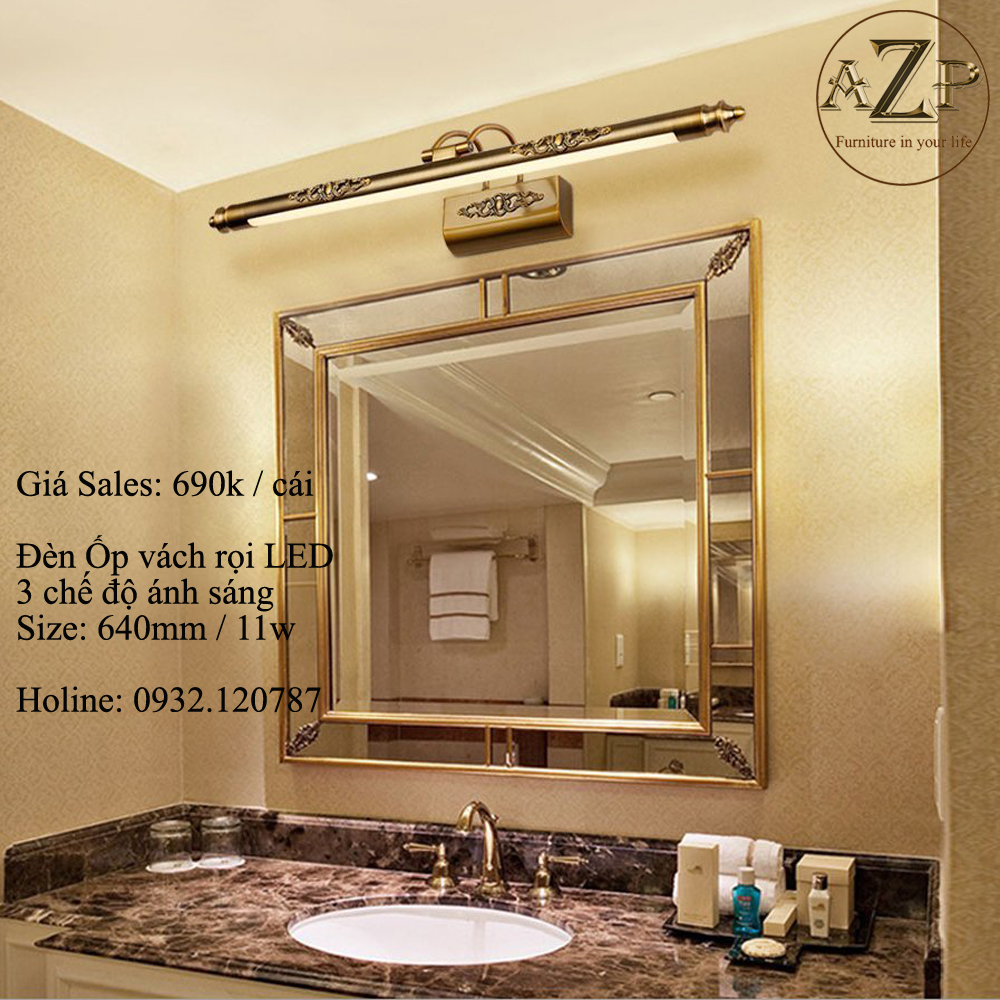 | Chất liệu | Chất liệu: hợp kim sơn tĩnh điện cao cấp, thủy tinh Kích thước: 200 x 450mm Loại bóng: LED 3 chế độ ánh sáng |