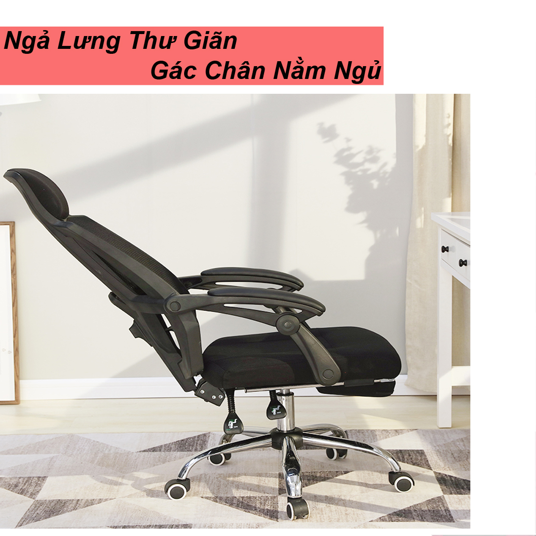 – Bạn cũng có thể điều chỉnh độ cao của ghế tùy thuộc vào trọng lượng cơ thể, bằng cách nâng cần hơi được tích hợp phía dưới. Ngã lưng tiện dụng, giúp người ngồi có thể ngả lưng ghế ra sau một cách thuận tiện, thư giãn thoải mái trong lúc làm việc