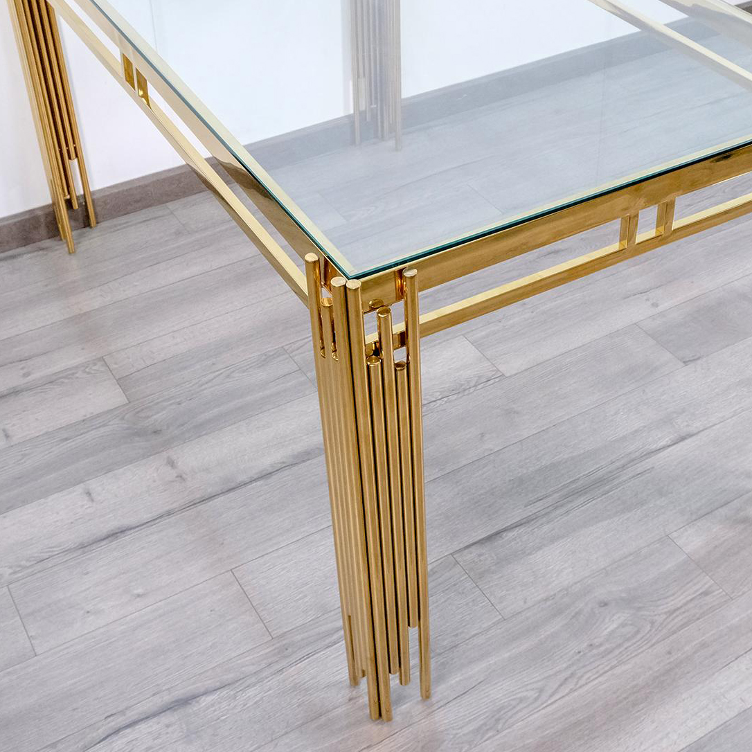 Bàn Ăn Luxury Kính 8mm Chân Mạ Vàng AZP Siêu Phẩm của Năm – Kích Thước 1.4m x 80cm