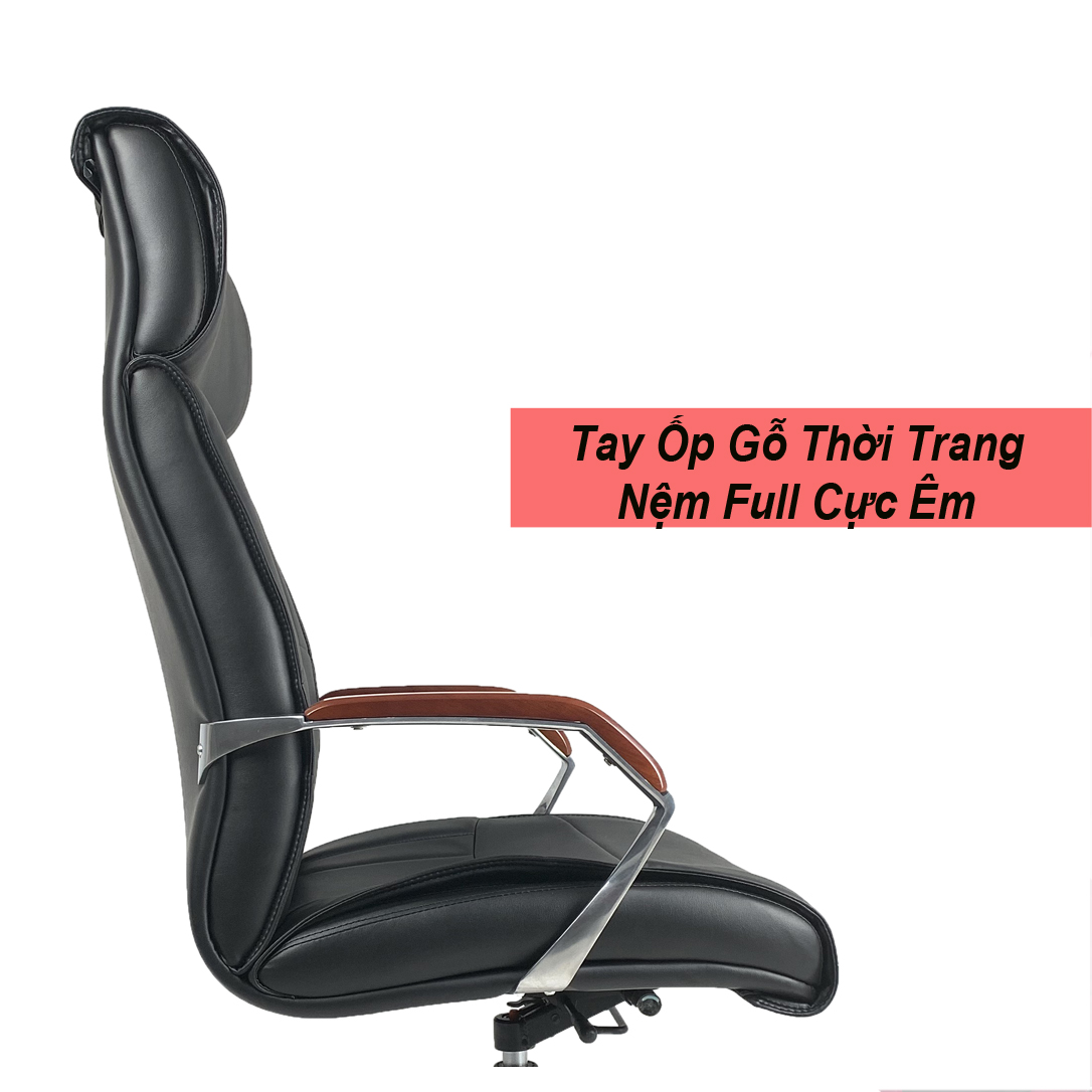 - Khung tay ghế được làm bằng Thép mạ Chrome ốp Gỗ